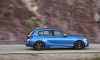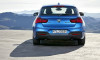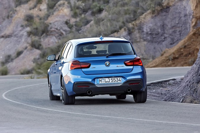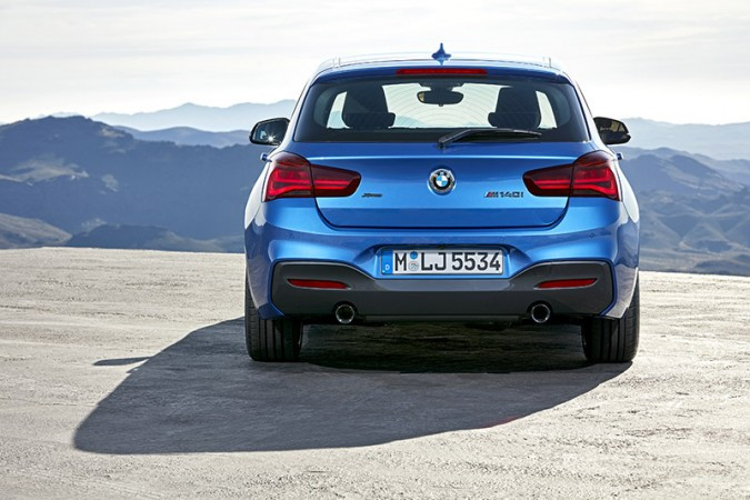O BMW M140i ganha evidência em detalhes, como a presença de itens do pacote M aerodinâmico, entre eles molduras metálicas de acabamento acetinado nas extremidades do para-choques dianteiro e nas capas dos espelhos retrovisores externos – estes na cor exclusiva M Performance –, inserto de cor preta na parte inferior do para-choque traseiro; acabamento externo BMW Individual em High-gloss Shadow Line, das duas saídas de escapamento independentes na traseira e das pinças dos freios M Sport pintadas de azul. As rodas de liga-leve M Double-spoke medem 18 polegadas e estão calçadas com pneus com tecnologia Run-Flat.