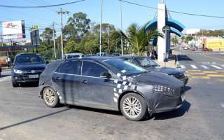 Logo após concluirmos uma matéria em Sorocaba, encontramos o carro disfarçado rodando próximo da avenida Afonso Vergueiro, por volta de 14h30. Fomos atrás para registrar a novidade. No começo, moto rista e passageiro do Focus não perceberam que estavam sendo fotografados. Até esse momento tínhamos tirado apenas fotos da traseira do carro, de placa verde CZA-2462.