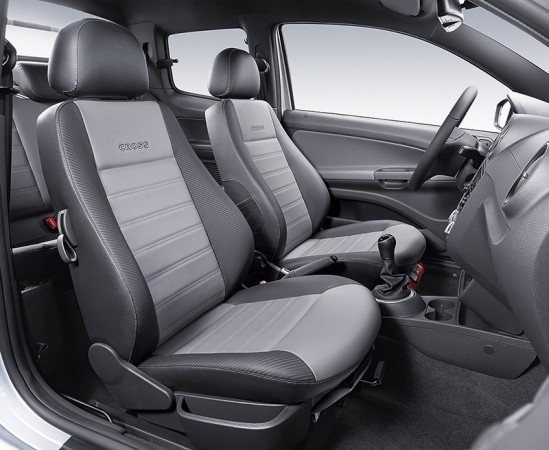 Entre os opcionais o módulo “Plus”, que é composto por capas dos retrovisores e maçanetas das portas pintadas na cor da carroceria, sensor de estacionamento, faróis duplos, faróis e lanterna de neblina, iluminação da caçamba, entre outros. Outro opcional é o rádio com entrada auxiliar e USB.