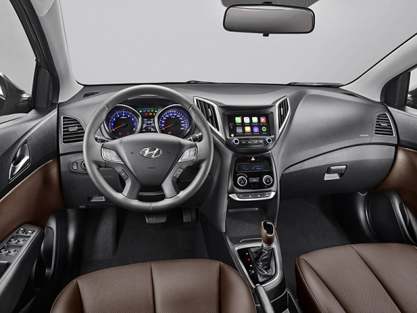 Por dentro, o HB20X apresenta painel preto em todas as versões, novo tecido com gravação em alto relevo e volante com couro perfurado. Recebe ainda a opção do pacote Dark Brown, com bancos, painel das portas dianteiras e manopla de câmbio em couro marrom, exclusivos da versão Premium.