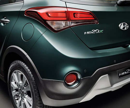O Novo HB20X recebe exclusiva e ampla grade frontal com detalhes cromados, proteções robustas da carroceria e barras de teto com acabamento preto. Traz faróis de neblina com projetores e lanternas Clear Type como itens de série, rodas de liga leve de 16 polegadas com acabamento diamantado, além de para-choques dianteiro e traseiro e identificação de emblemas renovados para toda a linha. Na versão Premium foram introduzidos faróis com projetores e Light Guide em LED.