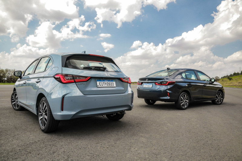 Os dois porta-malas perderam espaço, embora ainda seja um volume mediano para o sedan. Enquanto o Fit trazia 363 litros, o City hatchback entrega 268 litros O sedan passou de 536 litros para 519 litros.