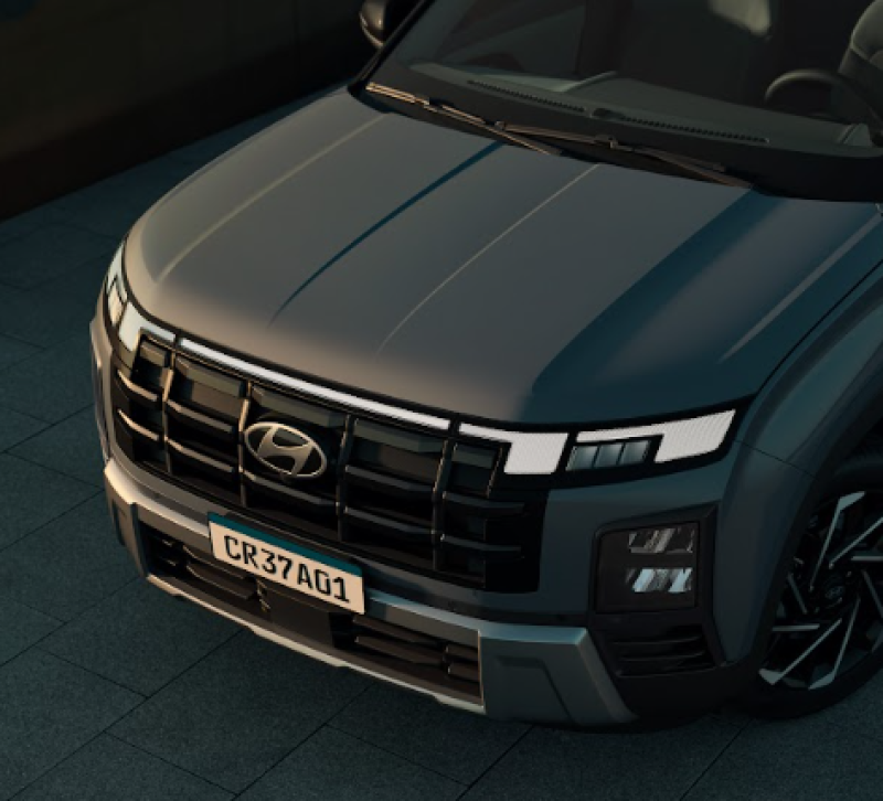 Será possível perceber de cara as novidades do Hyundai CRETA. Literalmente. Uma grade frontal totalmente renovada, em Black Piano, traz linhas mais sólidas em comparação com a geração anterior e uma nova aplicação da logomarca Hyundai. Seu conjunto óptico redesenhado, sob o conceito “seamless lighting”, traz uma faixa em LED que percorre toda a frente do carro e luzes de seta sequenciais nas pontas, em sintonia com os últimos lançamentos da Hyundai. O para-choque ganha novo desenho, que se une de maneira mais robusta ao visual frontal e compõe de maneira mais forte a “sensualidade esportiva” que é a assinatura de design da Hyundai em todo o mundo.