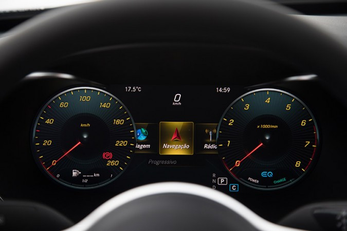 Outra novidade é que a partir da versão C 200 EQ Boost, o Classe C traz um novo painel de instrumentos totalmente virtual que tem 12,3 polegadas na diagonal e oferece alta resolução, com 1.920 x 720 pixels e três estilos programáveis.