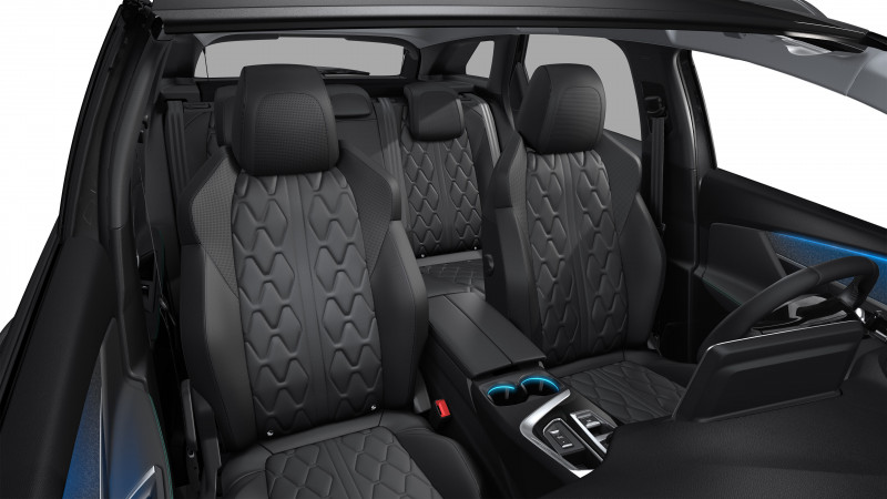 Novos estofados e acabamentos vêm marcar a subida de gama, contribuindo para a percepção de qualidade e a atratividade do habitáculo. São eles novo revestimento de couro Alcantara Preto Mistral no GT Pack; novo revestimento de couro preto com pespontos Tramontane na versão Griffe e novo retrovisor interno “Frameless” na versão GT Pack.
