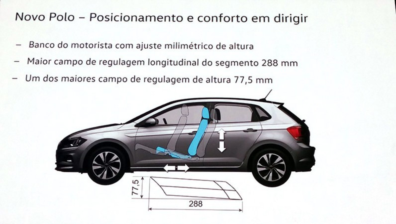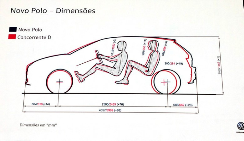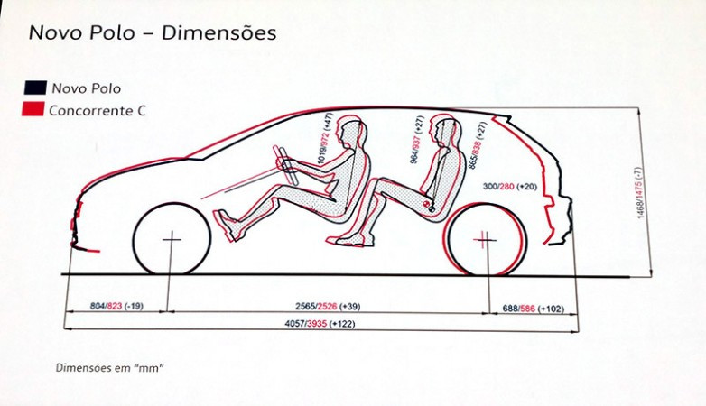 Com todas essas evoluções, o Novo Polo consegue entregar um espaço interno mais eficiente que os principais concorrentes, como Fiat Argo, Hyundai HB20, Ford New Fiesta, Honda Fit entre outros.