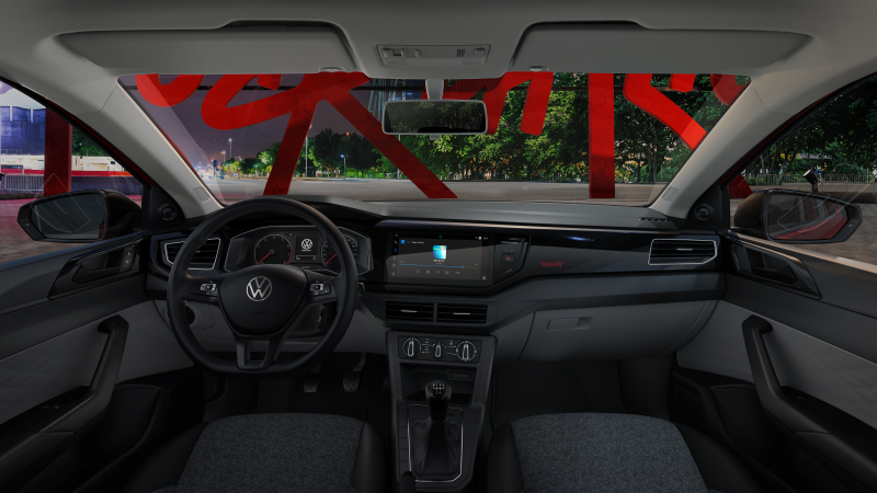 No interior, ouvir música é prioridade. No console, a central multimídia VW Play com tela de de 10” polegadas é de série com conexão Apple CarPlay e Android Auto sem fio e sistema de som com seis alto-falantes para ouvir as principais playlists do festival.