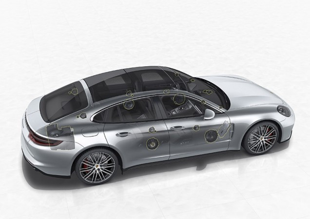 Evidentemente, medidas da afinação convencionais também foram parte do processo de desenvolvimento. Por exemplo, sistemas de alto-falantes com alto nível de eficiência foram implementados e a área de membrana acusticamente efetiva foi significativamente aumentada. Enquanto o sistema de som do primeiro Panamera trazia 16 alto-falantes, o novo Panamera traz 21, proporcionando uma melhor experiência sonora. O sistema presente no novo Panamera compreende um total de oito woofers, três alto-falantes de médio alcance, dois alto-falantes de alta amplitude e sete tweeters, assim como um subwoofer na parte traseira.