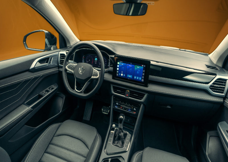 O que muda é como você sente tudo isso. Os bancos, painel e portas recebem novo revestimento premium, com costuras em contraste, Ambient Light com 10 opções de cores e a nova construção do painel. O novo VW Play Connect de 10,1 polegadas agora é flutuante, acompanhando o ar-condicionado digital de duas zonas e o carregador de celular por indução. O volante retoma os botões físicos, a pedido dos clientes da marca, mantendo todas as interações de conectividade e segurança na ponta dos dedos.