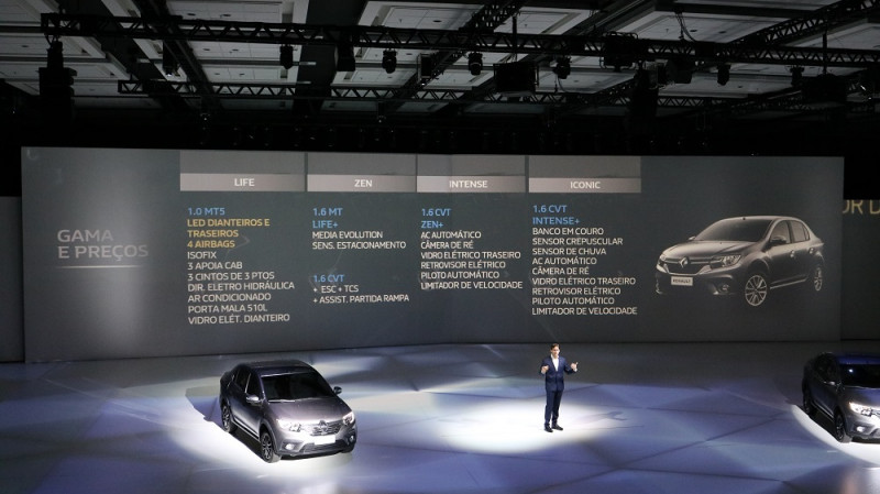 A nomenclatura das versões passa a seguir a mesma usada globalmente pela Renault: Life, Zen, Intense e Iconic (disponível apenas para Stepway e Logan). Os motores são os já conhecidos 1.0 litros SCe de três cilindros, e o 1.6 litro SCe de 4 cilindros.