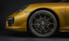 O 911 Turbo S Exclusive Series vem com rodas de 20 polegadas pintadas de preto com cubo rápido de série e suas linhas de design são cuidadosamente acabadas em Amarelo Dourado Metálico, utilizando uma nova tecnologia a laser. Pela primeira vez, as pinças de freios do sistema PCCB de freios de cerâmica são disponibilizados de fábrica numa versão pintada de preto com o logotipo Porsche em Amarelo Dourado Metálico.