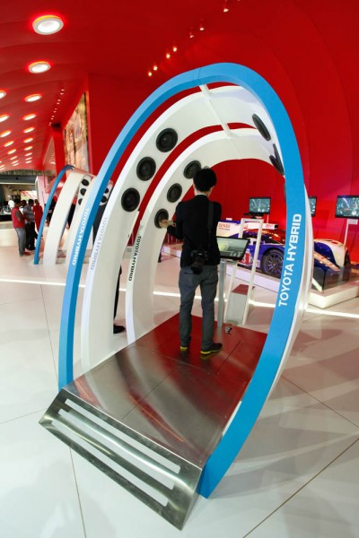 Outra atração interessante é o simulador de som do carro de competição da Toyota. Esse modelo disputa às 24 horas de Le Mans, no World Endurance Championship. Assim o participante pode fazer movimentos de dança, correspondentes a frequências sonoras.