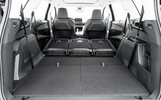 O volume do porta-malas também é bem generoso. A capacidade é de 780 litros em posição com cinco bancos e pode chegar a 2150 litros com bancos removidos da terceira fileira e a segunda fileira deitada. Quando todos os bancos estão utilizados, a capacidade é de 237 litros até o teto.