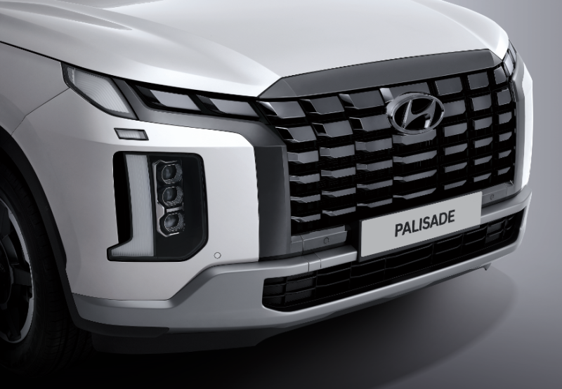 No design externo, destaca-se a grade em cascata, emoldurada pelas luzes de LED verticais, e as rodas de liga leve de 20 polegadas, que reforçam a robustez do modelo. Com conjunto ótico totalmente em LED, o PALISADE possui dimensões imponentes: 4.995 mm de comprimento, 1.975 mm de largura e 1.750 mm de altura. Com uma altura de 203 mm do solo e 2.900 mm de entre-eixos, oferece o maior espaço entre os principais concorrentes da categoria.
