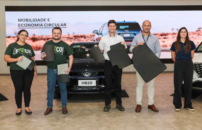 Uma das iniciativas recém apresentadas pela Hyundai prevê a confecção de tapetes automotivos provenientes dos retalhos de PVC descartados na produção dos bancos dos veículos. A ação é realizada em parceria com a BORKAR, empresa fabricante de tapetes automotivos e distribuidora de acessórios. A Hyundai entrega os retalhos à BORKAR, que armazena e utiliza esses resíduos na fabricação de novos tapetes. Atualmente, a montadora estima que potenciais cinco toneladas mensais de retalhos, que seriam descartadas, ganharão novo ciclo de vida na cadeia automotiva. A iniciativa prevê também o envio de resíduos de todos os tipos de selantes do processo de pintura, antes descartado e incinerado, para reuso no processo de produção dos tapetes.