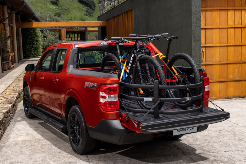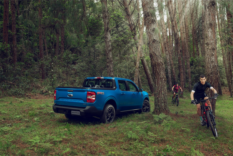 Oferecida na versão Lariat FX4, topo de linha, a Maverick vem de série com a conectividade FordPass Connect para comandos, informações e alertas remotos pelo celular. É equipada também com faróis de LED automáticos, sete airbags, ar-condicionado de dupla zona, assistente de frenagem autônoma com detecção de pedestres e ciclistas, auto start-stop, multimídia SYNC com tela de 8 polegadas, controle de estabilidade e tração, câmera de ré e teclado para abertura das portas por código.