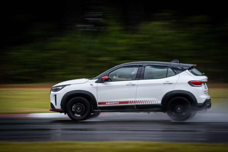 Na parte frontal do SUV há ainda o aplique superior com design de fibra de carbono e a grade flutuante com abertura de ar dedicada para maior eficiência. Também traz elementos para melhorar a aerodinâmica, como o air curtain e o para-choque frontal mais baixo e largo. Já na parte de trás, traz exclusividade na antena shark super esportiva, a assinatura Abarth e um para-choque traseiro que reforça o DNA Abarth Racing com escapamento com ponteira dupla cromada de 3 polegadas e ronco característico da marca.