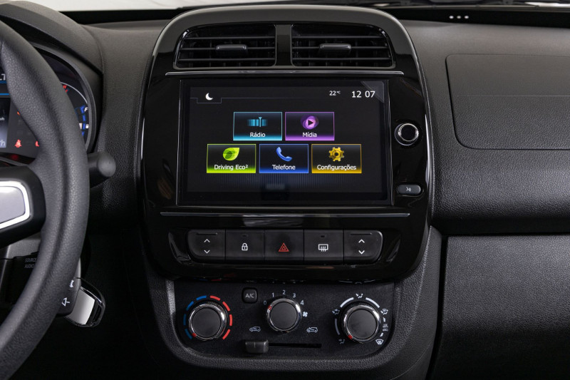 Para facilitar a vida a bordo, a nova central multimídia Media Evolution (Já vista no Duster) traz mais tecnologia e conectividade ao condutor. Com uma nova tela maior, agora de 8”, capacitiva e com interface simples e intuitiva, a central oferece espelhamento para celulares com Android Auto e Apple CarPlay, permitindo usar, por exemplo, Spotify, Waze e Whatsapp na tela do multimídia, e botão “push to talk”, além do sistema Driving eco2, que detecta o modo de condução do motorista e fornece dicas facilmente aplicáveis que podem resultar em uma economia de combustível de até 20%. Uma novidade aqui é o indicador de temperatura externa.
