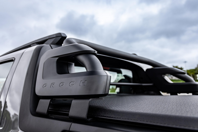 O modelo recebeu ainda novas barras de teto, que suportam até 80 kg, santantônio redesenhado e rodas de liga leve com visual inédito, sendo na cor cinza na versão Intense e com acabamento biton diamantado na Outsider. Atrás, novas lanternas com acabamento fumê e o novo logo Oroch destacado na tampa completam o visual renovado do modelo. Em todas as versões, o protetor de caçamba é de série, aumentando a versatilidade e a proteção do compartimento de carga.