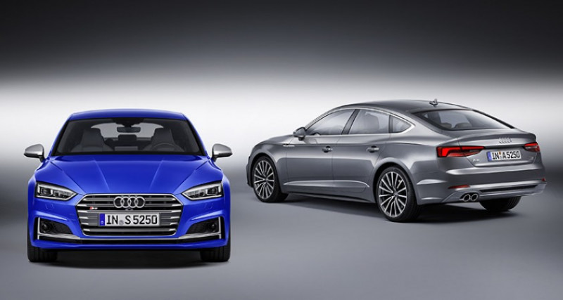 O novo A5 Sportback surge como uma figura elegante. O cupê de cinco portas chama a atenção por seu design arrebatador. Entre os destaques de estilo estão a dianteira reta, a larga grade Singleframe e o capô vincado. Uma característica marcante na lateral são as linhas que formam uma onda tridimensional. Mas o A5 Sportback não é apenas bonito, mas também desenvolvido para o uso diário. Quase todas as dimensões internas aumentaram. O porta-malas tem capacidade para 480 litros. Na Alemanha, há cinco opções de moto res a escolha, sendo duas a gasolina e três a diesel, que produzem entre 190 cv a 286 cv. Já o S5 Sportback é equipado com um 3.0 TFSI de 354 cv e traz o sistema de tração quattro de série. As versões de duas portas do modelo, A5 e S5 Coupé, também estão em exibição no salão francês.