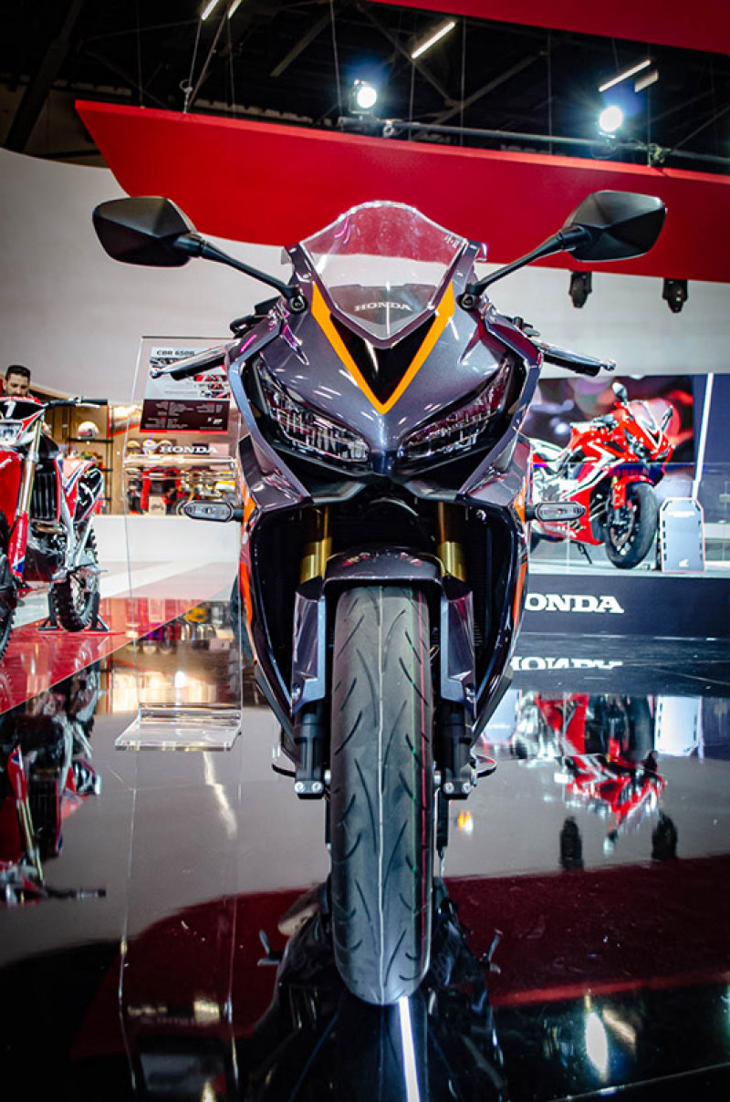 =11ptHonda CBR 650R - É uma máquina com DNA de competição. A nova carenagem integral, com conjunto óptico de dois faróis de LED e a rabeta mais curta e estreita, oferece melhor rendimento aerodinâmico. O motor de 649 cm³ tem potência máxima de 88,4 cv a 11.500 rpm, enquanto o torque está totalmente disponível (6,13 Kgf.m) a 8.000 rpm. Entre as novidades tecnológicas destacam-se a embreagem assistida deslizante, controle de tração, bengalas invertidas, pinças de freio radiais e painel digital colorido. A CBR 650R é uma máquina para quem curte a pilotagem esportiva em estradas ou em track days.