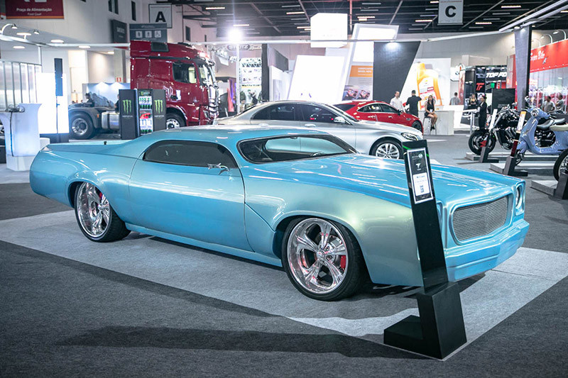 =11ptO vintage TMC El Camino, modelo de carro de 1976, chega ao Salão Duas Rodas com a customização de Tarso Marques. A picape é destaque no evento e vem com para-choque embutido, blindagem, teto baixo, sistema hidráulico que possibilita levantar a tampa da frente e chassis como de carro de corrida.