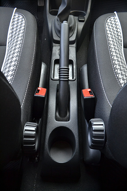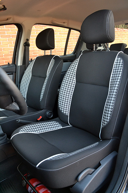 Ponto a favor do Sandero Tweed é justamente o espaço interno. No banco traseiro, o modelo está entre os mais espaçosos na categoria de hatchs compactos “fantasiados”, tanto para pernas, quanto na altura do teto. Outro ponto favorável é o porta-malas com 320 litros (também entre os maiores). Porém, o Sandero tem alguns problemas quanto à ergonomia interna. A postura ao volante é apenas razoável. E a localização de alguns comandos não é a melhor de todas. Outro senão, é a tela da central multimedia que fica em posição muito baixa. Por fim, o acabamento do carro, é um pouco rústico. Falta qualidade estrutural nessas partes.
