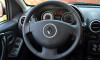 Um detalhe muito útil e prático é o comando satélite instalado na parte de traz do volante. Como ele é possível controlar todas as principais funções da central multimedia. Ajustes como sintonia de estações de rádio, mudança de fonte, volume, avanço de faixas e inicio e finalização de chamadas celulares (quando no viva-voz bluetooth) estão disponíveis. Aliás, esse controle satélite do Sandero, está entre os mais eficientes de toda a categoria, pois com uma mão (aliás, usando apenas o dedo indicador), o moto rista tem total interação com o multimedia. Completam os itens de conforto a regulagem elétrica dos retrovisores, o alarme perimétrico e o volante com revestimento de couro. Mas faltou a regulagem de altura do volante, que foi suprimida nessa série, deixando um estranho buraco na parte de baixo da coluna de direção.