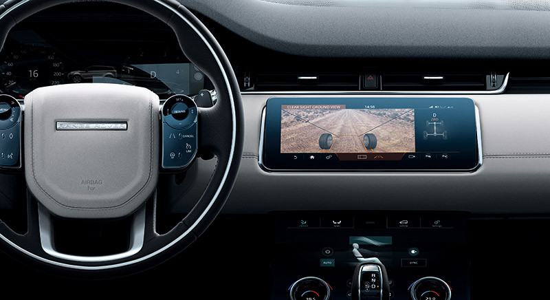 O espelho retrovisor interno do Novo Evoque possui a função ClearSight, tecnologia que eleva seu nível de funcionalidade, ao torná-lo uma tela que transmite imagens em alta resolução de um aspecto mais amplo do que ocorre atrás do modelo. O sistema pode ser ativado quando a visão do motorista está obstruída por qualquer motivo.
