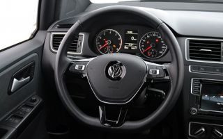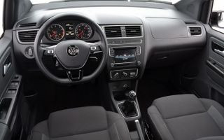 O interior segue a linha racional dos modelos de entrada da Volkswagen. Conta com qualidade de montagem e de materiais.