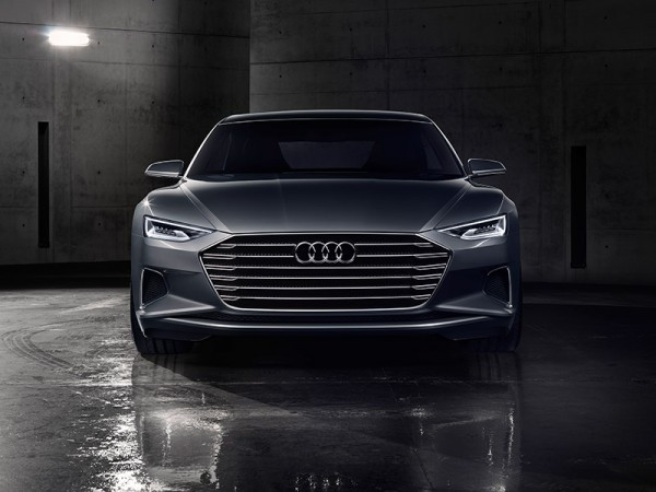 O Audi prologue é um pouco mais curto e baixo que o atual sedã A8, com comprimento de 5,10 metros, distância entre eixos de 2,94 metros, 1,95 metro de largura e 1,39 metro de altura. Um item expressivo em sua dianteira rebaixada é uma grade Singleframe. A grande grade do radiador foi bastante alargada e está posicionada mais baixo do que nos atuais modelos de série. Os faróis, com forma larga e achatada, são posicionados com suas pontas acima da grade Singleframe. Eles utilizam a tecnologia Matrix laser de alta resolução, uma inovação da Audi que abre novas perspectivas para o design de faróis e permite o desenvolvimento de funções completamente novas. A nova tecnologia laser permite que os engenheiros especializados em iluminação criem formas extremamente leves, compactas e elegantes, com formatos inspirados nos olhos.