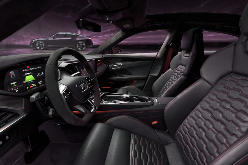 O Audi RS e-tron GT é o primeiro superesportivo elétrico da marca. O modelo RS precisa somente de 3,3 segundos para acelerar de zero a 100 km/h. A velocidade máxima é de 250 km/h. O motor elétrico no eixo dianteiro libera 175 kW de potência, enquanto o motor na traseira entrega 335 kW. A potência total é 440 kW e o torque total é 830 Nm. No modo boost, a potência aumenta brevemente para 475 kW ou 646 cavalos.