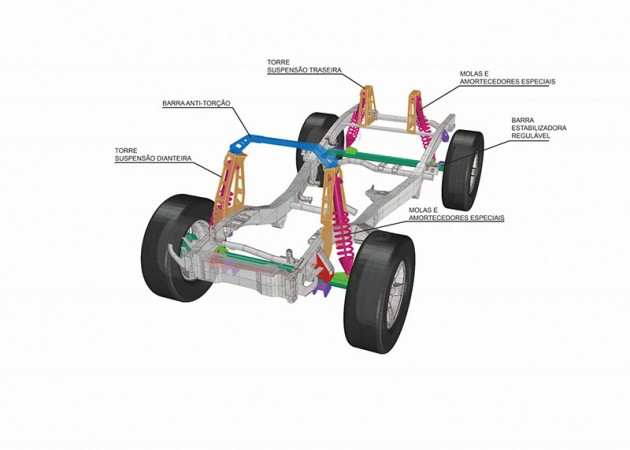 Para garantir a segurança, foram desenvolvidos diversos componentes em conformidade com as normas FIA. Os pneus Pirelli Scorpion MTR receberam reforços estruturais e composto especial para a competição. Estamos levando três combinações diferentes para serem testadas em diversas condições de piso e traçado.