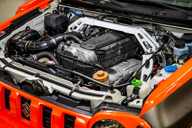 Desde o ano passado, quando o Jimny estreou na prova, o carro passou por grande evolução técnica. "Foi desenvolvida nova geometria de suspensão com incremento de 78% no curso de compressão na dianteira e 61% na traseira. O importante é que essa evolução representa um ganho muito significativo no curso de compressão da suspensão mantendo o mesmo centro de gravidade", explica Renato Pereira, gerente de engenharia da Suzuki, que acompanha diariamente o desenvolvimento da versão do Jimny para uso esportivo off road.