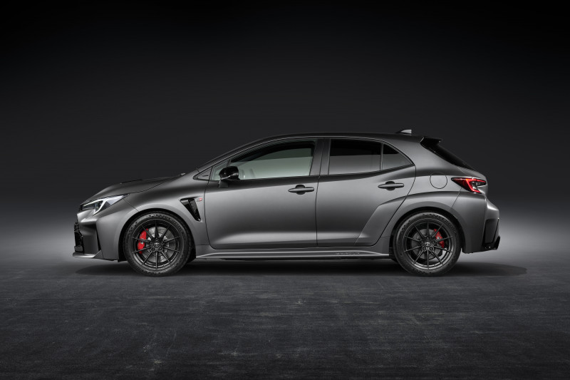 Embora a estrutura básica da carroceria do Corolla hatch tenha sido adotada para o GR Corolla, os para-lamas dianteiro e traseiro são 30 mm mais largos para entregar uma experiência de direção mais empolgante. A grade frontal mais ampla favorece a admissão de ar.