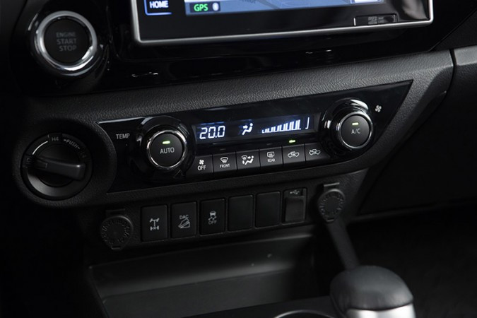 Nas versões SRV e SRX, a Hilux traz a novidade do sistema de ar-condicionado automático digital de design renovado, que inclui saídas de ar para os bancos traseiros. Outra novidade na SRV e SRX é uma tomada de 220 volts, que pode ser usada para carregar celulares, computadores portáteis, localizada dentro do console central.