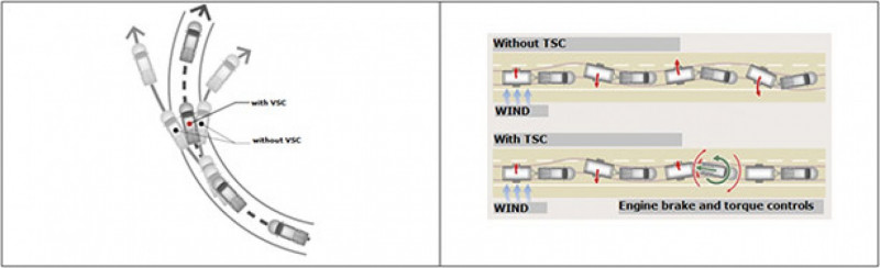 As versões SRV e a SRX também trazem o controle de tração ativo (A-TRC) e Controle de Estabilidade (VSC). O equipamento previne saídas laterais, aplicando pressão automática nos freios de qualquer uma das quatro rodas que podem estar perdendo aderência, transmitindo mais torque à roda oposta, o que garante a correta operação na tração do veículo.