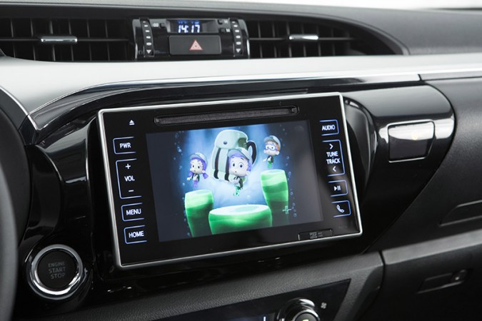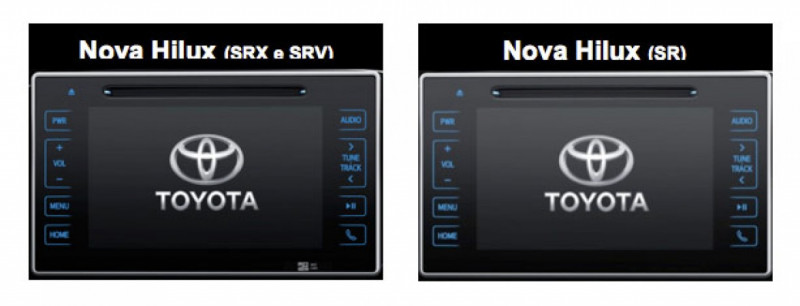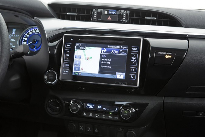 As versões SR, SRV e SRX contam com sistema de áudio integrado à uma tela touchscreen de 7 polegadas, com funções de DVD, MP3, entrada auxiliar de vídeo e seis alto-falantes. Ela também conta com informações de consumo e câmera de ré, para facilitar manobras de estacionamento. Exclusivamente na Hilux SRV e SRX, existe navegador GPS e TV digital.