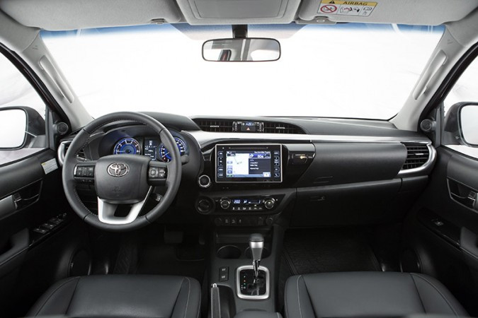 Desde a versão de entrada, a nova Hilux conta com direção hidráulica progressiva, ar-condicionado manual, coluna de direção com regulagem de altura e profundidade, medidor de economia de combustível, aviso sonoro de chave na ignição e luzes acesas, limpador do para-brisa com temporizador e nivelador dos faróis.