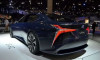 A traseira do LF-FC é realçada por lanternas que também adotaram o sistema de DRL em assinatura em “L”. Quando visto de perfil, o verdadeiro caráter do LF-FC é revelado. O teto flui da frente para trás na forma de um "cupê de quatro portas", estimulando a imaginação quanto ao seu comportamento em estradas ou pistas e terrenos sinuosos. As rodas de alumínio de 21’’ de fibra de carbono reforçado de plástico (CFRP) adicionam uma dose extra de dinamismo.
