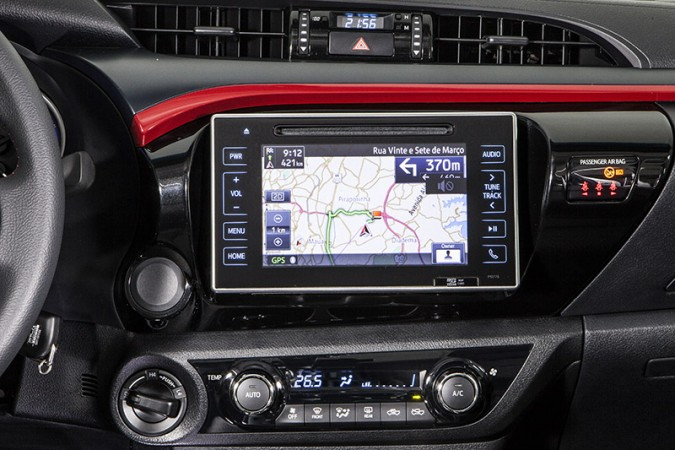 Além disso, o modelo conta, assim como nas versões SR de cinco e sete assentos, com coluna de direção com regulagem de altura e profundidade, Sistema Multimídia Toyota Play com tela de 7” touchscreen, com sistema de navegação (GPS) integrado, sistema de entretenimento de vídeo integrado ao painel com TV Digital e leitor de DVD, rádio com CD Player/MP3, câmera de ré, Bluetooth®, conexão USB e AUX e seis alto-falantes.