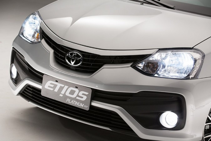 A Toyota lança no mercado brasileiro a linha 2017 do Etios Platinum, nas versões hatchback e sedã. O modelo destaca-se pelas novas rodas de liga leve de 15” com design esportivo, acabamento preto na coluna central, grade dianteira na cor do carro, máscara negra na lanterna traseira, acabamento dos bancos em couro e material sintético, aerofólio traseiro (na versão sedã), entre outros. A grande novidade, contudo, é seu design exclusivo, com para-choques dianteiro e traseiro e grade frontal diferenciados desenvolvidos pela engenharia brasileira.