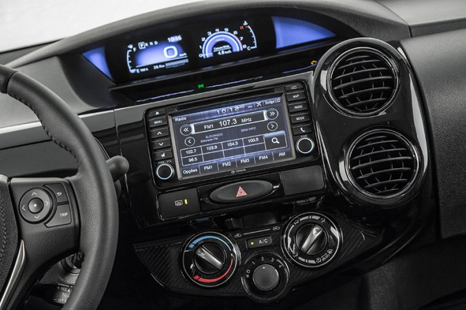 O painel de instrumentos foi incrementado com um display de 4.2”, com tecnologia TFT de alta resolução, o chamado Toyota Smart Screen. Nele, dois grandes círculos reúnem as informações de bordo: o do lado direito mostra o conta-giros e o termômetro do moto r, o esquerdo, o velocímetro e o indicador de combustível.