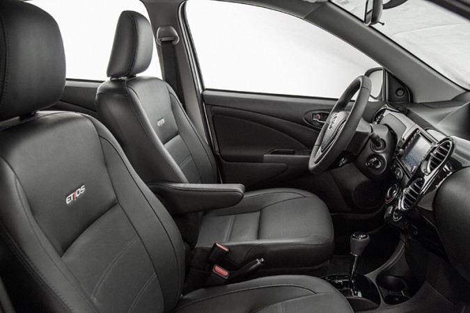 Internamente, oferece com bancos que mesclam couro e material sintético, além do sistema multimídia Toyota Play, com áudio, TV digital, DVD, GPS, câmera de ré e Bluetooth.