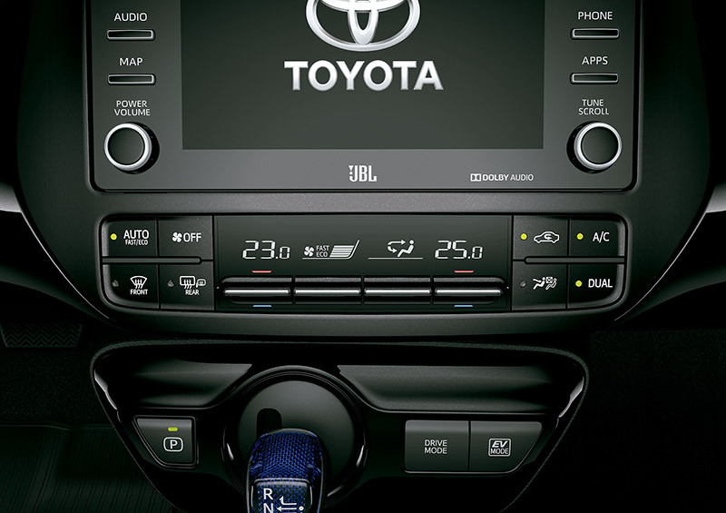 Entre os principais itens de conveniência que equipam o Prius, estão ar-condicionado dual zone automático com display digital; bancos dianteiros com sistema elétrico de aquecimento; carregador sem fio para smartphones; freio de mão com acionamento elétrico por botão; projeção de informações no para-brisa em 3D; Smart Entry (portas dianteiras e traseiras) e Start/Stop Engine Button.