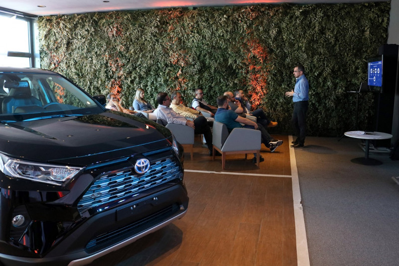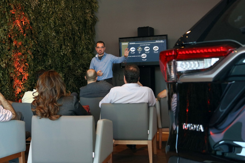 Além dos convidados serem atendidos com hora marcada, recepção com um sofisticado bufê, todos também participaram de uma rápida palestra (com aproximadamente 20 minutos) sobre as tecnologias que o novo Toyota RAV4 oferece (saiba tudo sobre o RAV4 AQUI). Os convidados puderam entender de forma simples como funciona a tecnologia híbrida, e ainda os sistemas de assistência a condução, que são inéditos nos carros da Toyota, no mercado brasileiro.