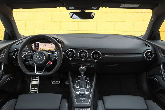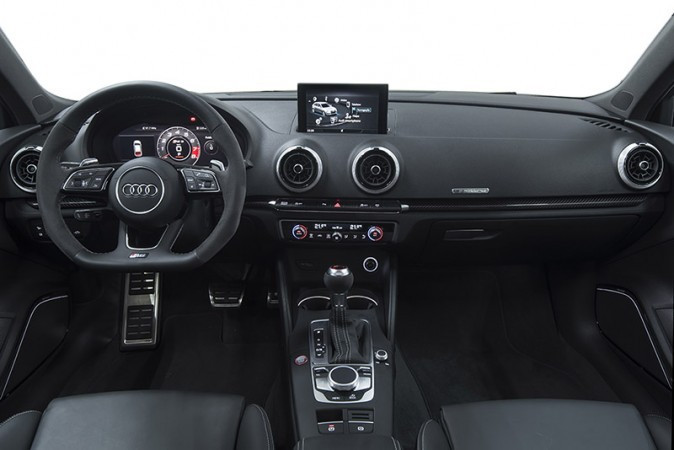 A lista de equipamentos inclui Audi virtual cockpit, bancos esportivos de couro Napa Fina, acabamento interno em fibra de carbono, volante multifuncional esportivo com base aplanada revestido em couro, capas dos retrovisores na cor preto brilhante, escapamento esportivo RS, faróis Full Led, sensor de estacionamento dianteiro e traseiro, além de câmera de ré, Audi drive select, sistema Keyless-Go, suspensão esportiva RS, Audi smartphone interface, sistema de som Bang & Olufsen e rádio MMI com sistema de navegação.