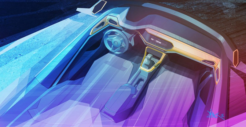 Dessa vez divulgou desenhos do interior do modelo e confirmou que o modelo terá opcionalmente acabamento bicolor na porção horizontal do painel. Além disso, o T-Cross terá a opção do teto solar panorâmico, que aumenta ainda mais a área de luz natural no interior e a sensação de conforto. O modelo também será equipado com o “Ambient lighting”, um sistema de luzes deixa o interior mais sofisticado.