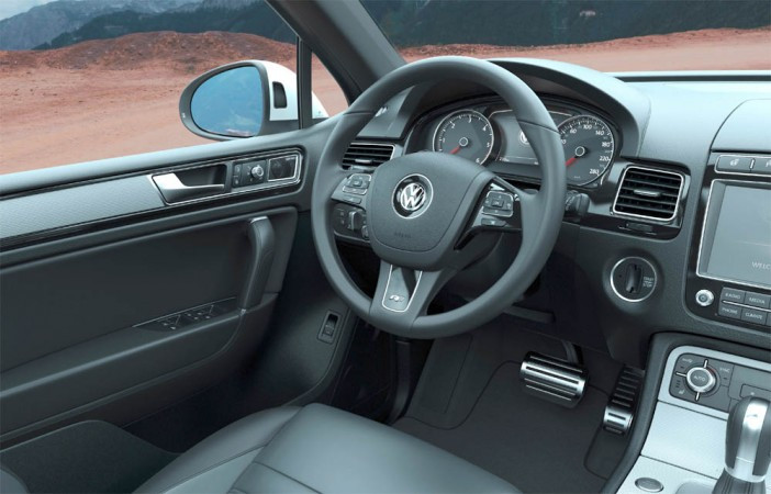 Outra novidade da Volkswagen no Salão do Automóvel de São Paulo será o Touareg na versão V8 R-Line. A mudança é sutil, com novo design na frente e na traseira, além de novas cores e rodas. A marca também incluiu novas tecnologias como os freios com sistema “Multicollision Brake” (que ajuda a evitar choques secundários em caso de acidente). Aperfeiçoamentos na aerodinâmica e a introdução dos novos pneus com menor resistência à rolagem contribuem para aumentar a economia de combustível.