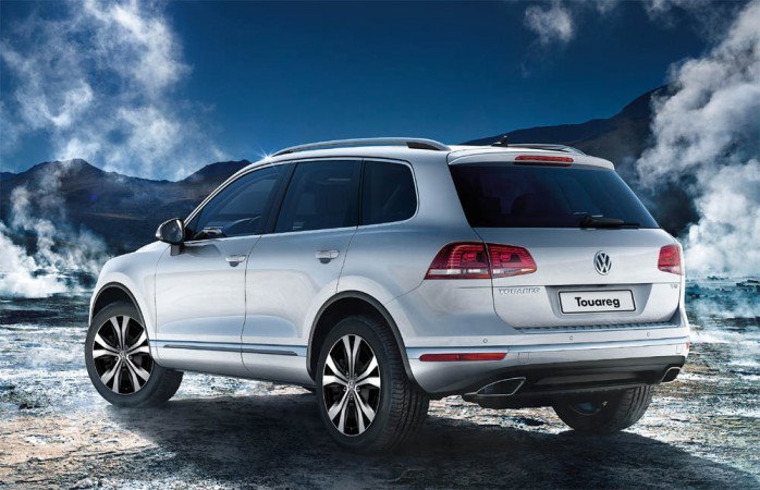 A dianteira da Touareg traz mudanças. Os faróis estão maiores. Mudanças no capô, grade do radiador e para-choque também são notadas. Na traseira, nota-se um para-choque modificado com lanternas de neblina em LEDs. Na lateral, as rodas são novas com estilo “Talladega” de 20 polegadas (com pneus 275/45) têm cinco raios duplos e são de série na versão V8 R-Line. O interior também recebeu algumas melhorias. Vários botões receberam um novo estilo de comando rotativo.